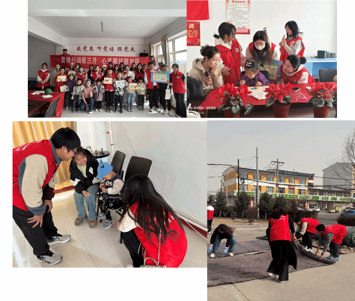 “心灵驿站”驻社区,志愿服务暖人心。我院志愿者们走进盛乐经济园区多个社区,不仅为居民提供心理健康讲座、亲子沟通建议等专业知识普及,同时对整理了环境卫生,清扫街道、整理公共设施,以实际行动美化社区环境。活动累计服务居民80余人次,居民感慨:“这些孩子既暖心又务实,真是新时代的‘活雷锋’!”志愿者的红马甲身影,成为春日里最动人的风景线。