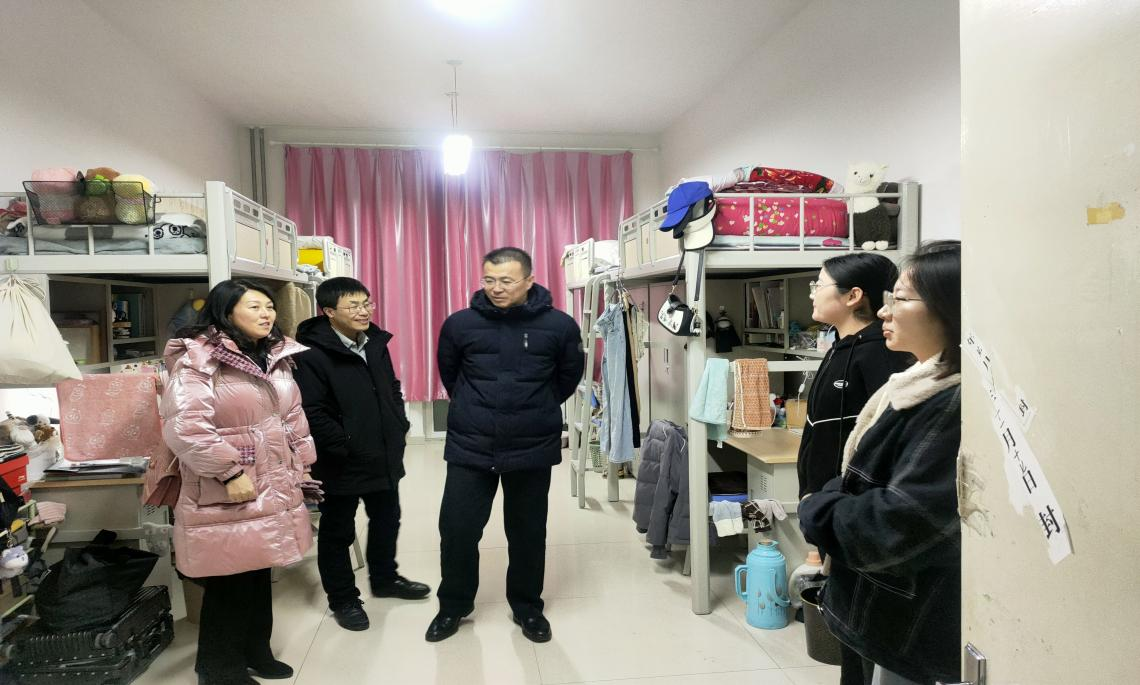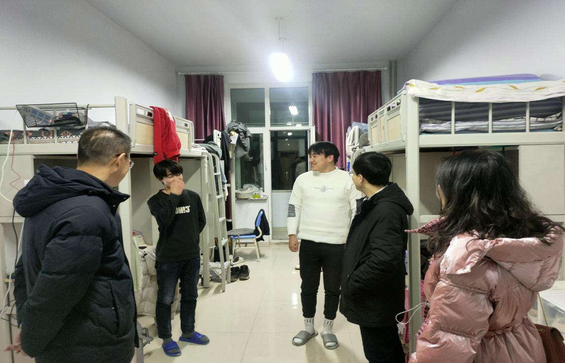 为了更好地关心假期留校学生,及时了解学生的思想状态和心理诉求,1月14日晚,yl7703永利集团党委书记侯友、党委副书记副院长张春林、副院长金童林、学就办主任张金钟一行深入宿舍楼走访看望假期留校同学,为他们送去了温暖和关怀。