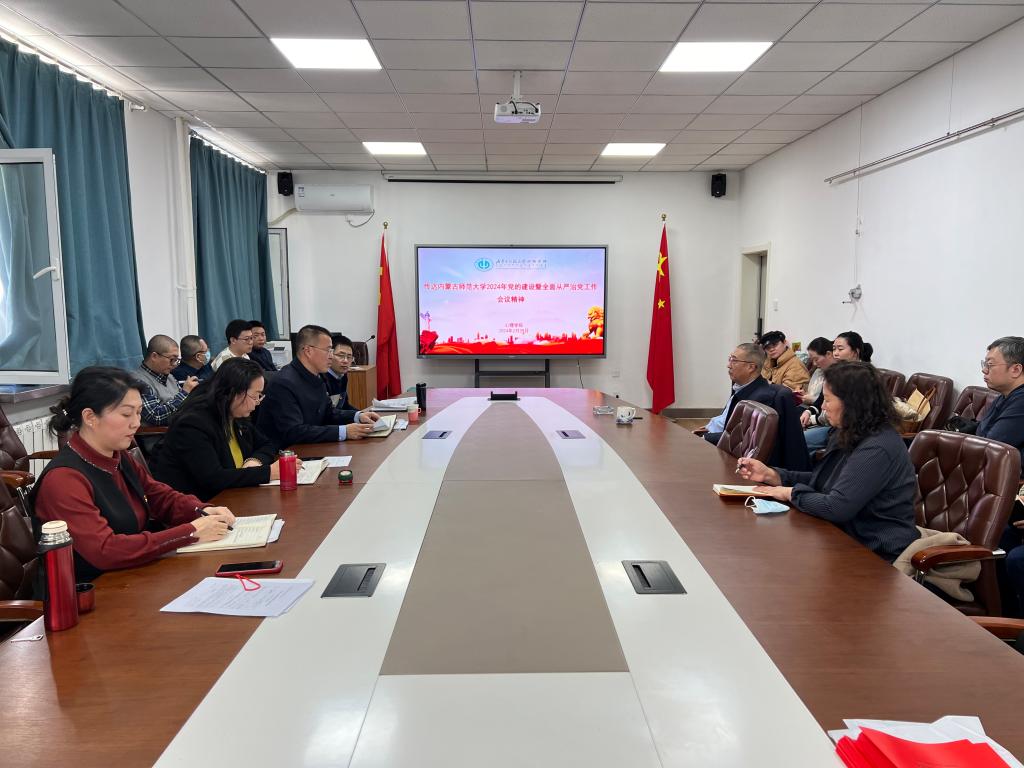会上侯友原文领学并传达了学校党委书记李树林的讲话内容。李树林书记在讲话中指出,2023年是全面贯彻党的二十大精神的开局之年,也是学校各项事业发展的加速之年。过去一年,校党委坚持以习近平新时代中国特色社会主义思想为指导,深入学习贯彻习近平总书记关于党的建设的重要思想,以全面从严治党为保障,以高质量党建为引领,锐意进取,奋发有为,攻克了许多长期没有解决的难题,办成了许多事关长远的大事要事,一是以“两个维护”为最大政治,全力推动党对学校工作的全面领导更加有力;二是以习近平新时代中国特色社会主义思想为根本遵循,全力推动理论武装持续深化;三是以锻造坚强组织、建设过硬队伍为重要着力点,全力推动新时代党的组织路线落地见效;四是以党的建设与事业发展深度融合为主要抓手,全力推动高质量发展破题显效。李树林书记强调,2024年是实现“十四五”规划目标任务的关键之年,是学校召开第十二次党代会、谋篇布局之年。全校上下要凝心聚力,以永远在路上的政治自觉将全面从严治党向纵深推进,把党的政治优势、组织优势转化为干事创业的强大动能。他就做好学校党的建设和全面从严治党工作提出要求,一要深学细悟笃行习近平总书记关于党的建设的重要思想和关于党的自我革命的重要思想;二要深入落实新时代党的建设总要求和新时代党的组织路线,扎实推进党的建设高质量发展;三要以党的自我革命精神推进全面从严治党向纵深发展;四要压实政治责任,推动形成管党治党强大合力。
