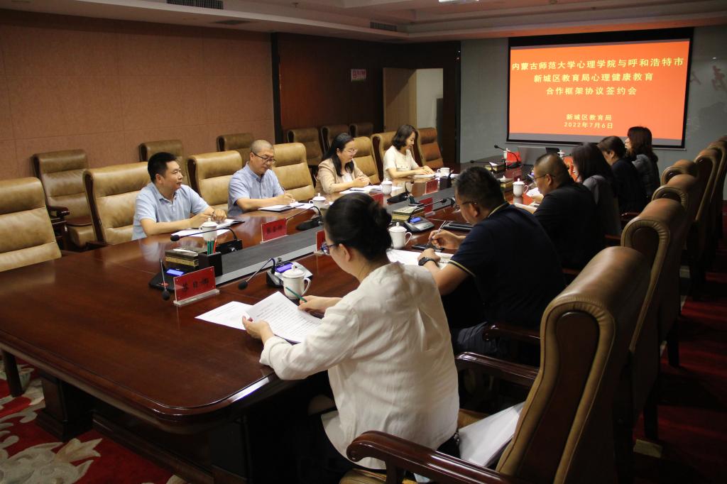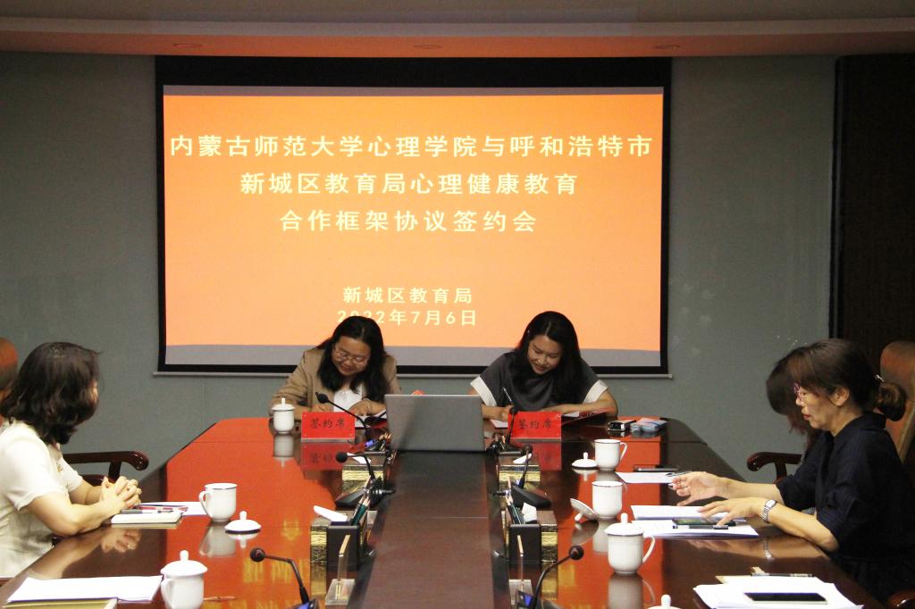 为进一步加强实践教学,提升人才培养质量,促进毕业生高质量就业,发挥学科专业优势,助力社会心理服务体系建设,7月6日下午,我院与新城区教育局心理健康教育合作框架协议签约暨yl7703永利集团教育实践与就业基地挂牌仪式隆重举行。新城区教育局党组书记、局长黄咏梅,新城区教育局副局长商辉、郝素兰、卜二军,新城区教育局机关纪委书记武爱珍;yl7703永利集团院长乌云特娜,院党委副书记、副院长张晓阳,心理学系系主任杨晓峰,学生工作与就业办公室主任张金钟等参加会议。