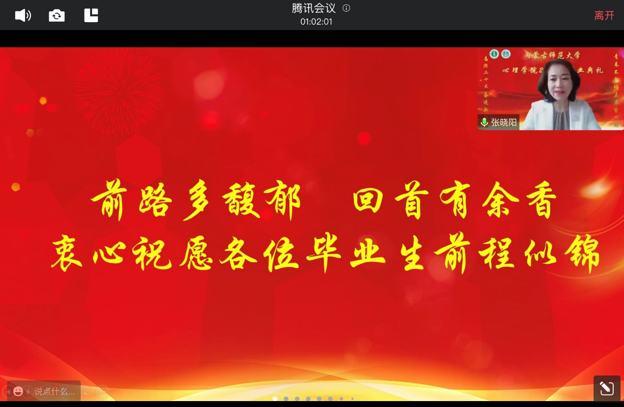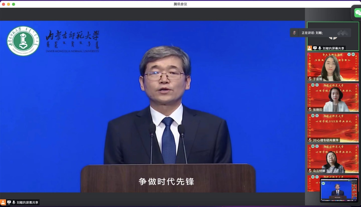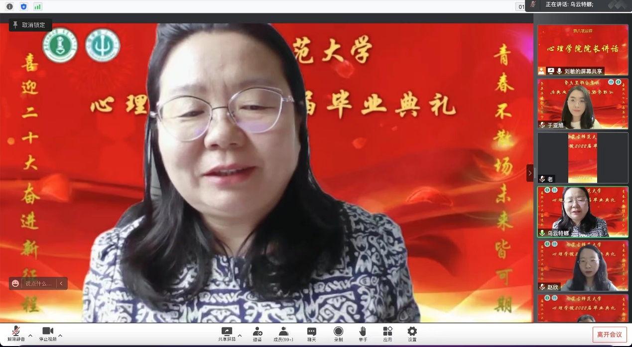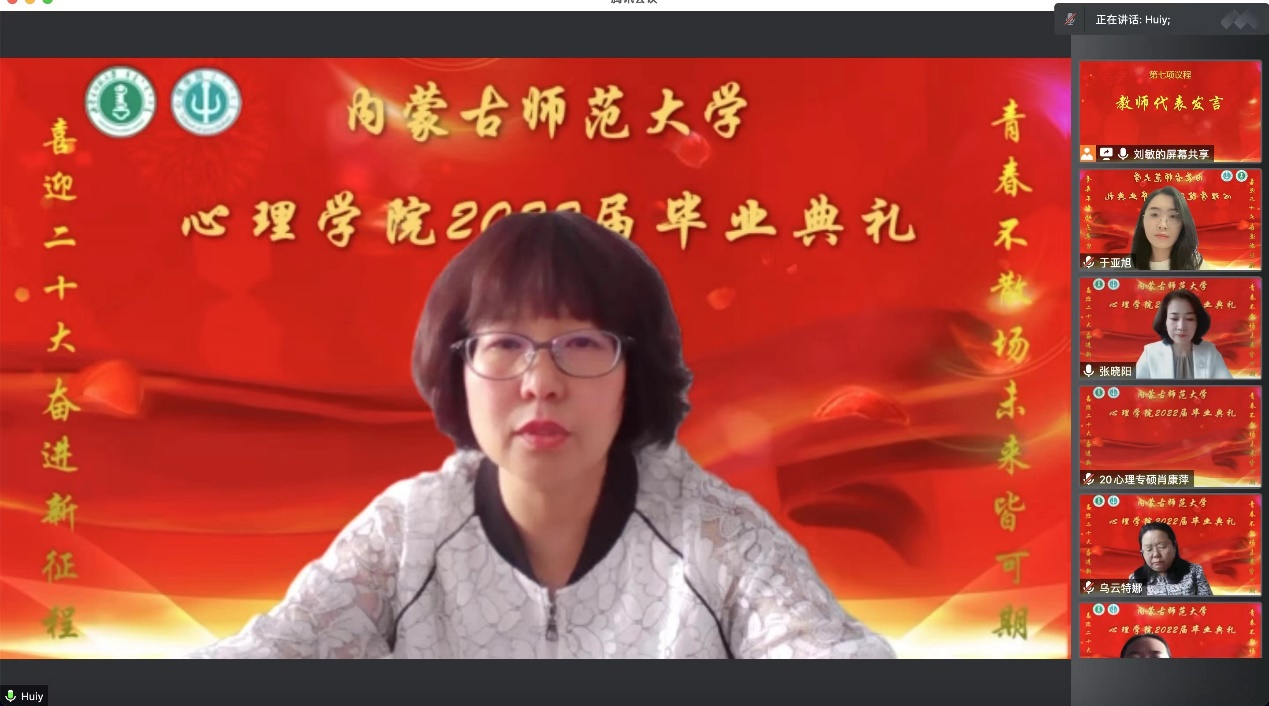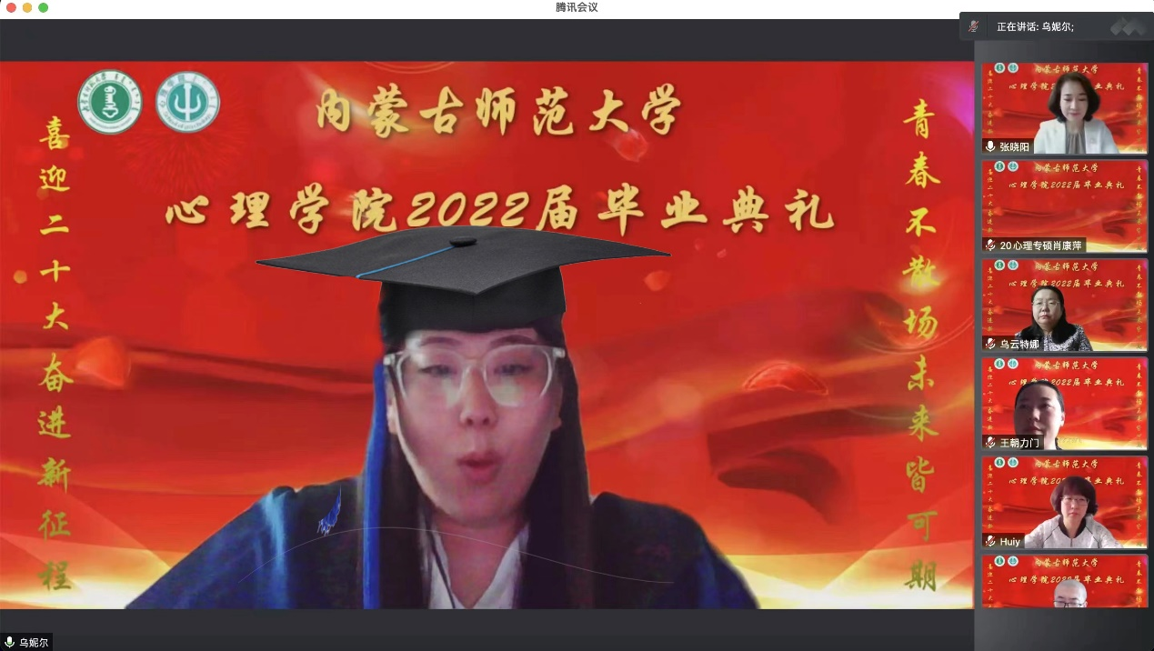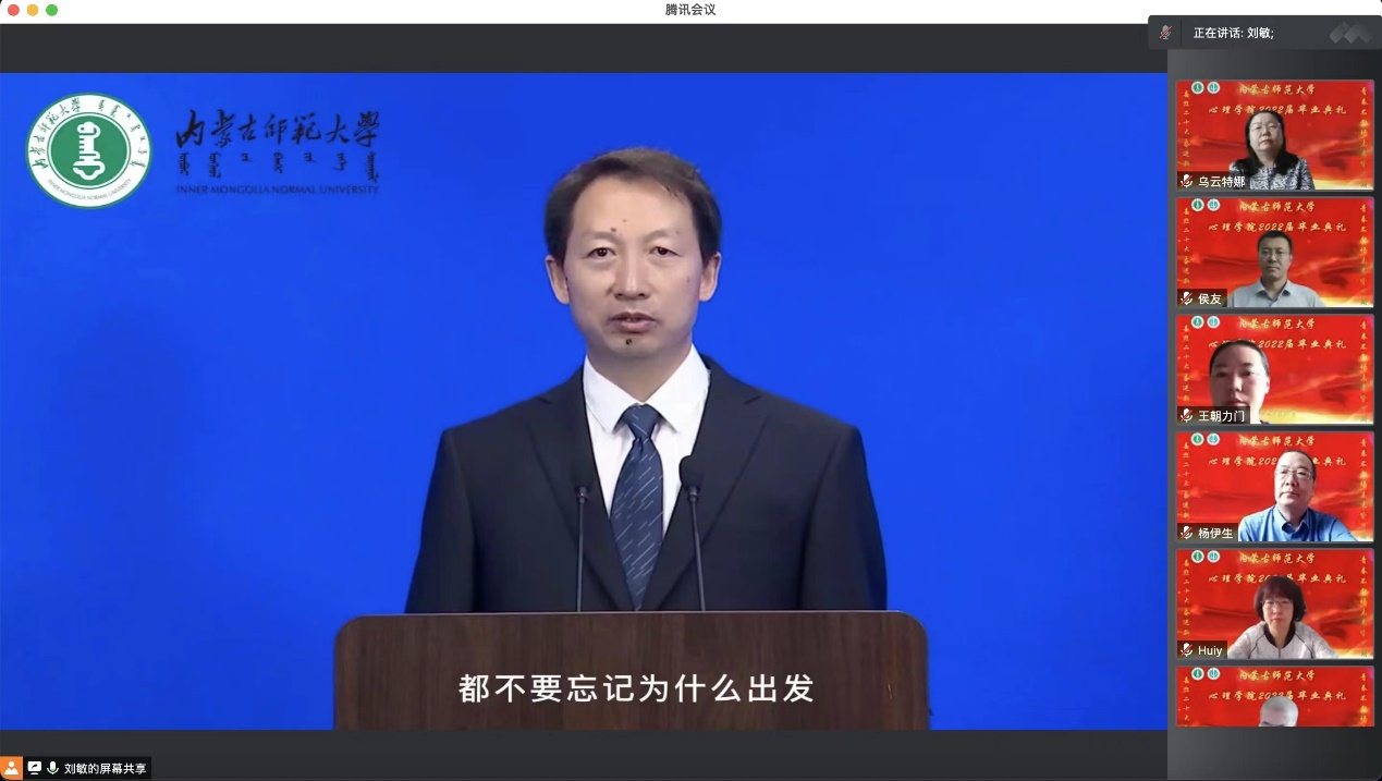 yl7703永利集团院长、博士生导师乌云特娜教授为全体毕业生送上深情寄语。她称赞同学们在疫情的考验之下仍然能够以理性平和的心态去处理问题,殷切嘱托同学们要脚踏实地、不忘初心,也要志存高远。牢记习近平总书记在今年建团百年讲话上对青年的殷切期望。最后乌院长教诲同学们,要常怀感恩,yl7703永利集团永远是我们共同的家,欢迎大家随时回家。