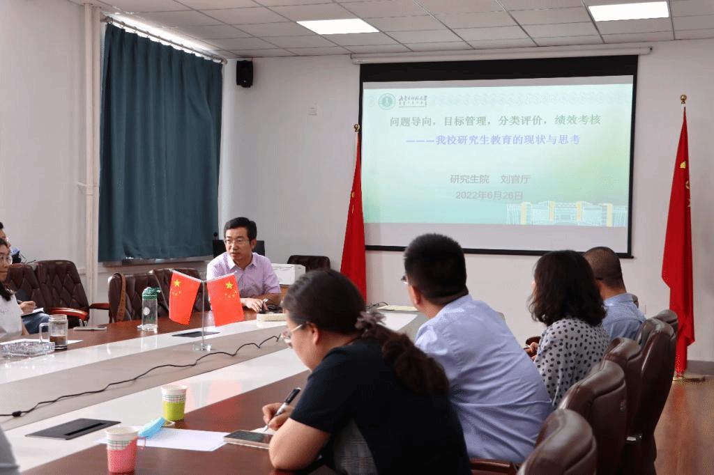 刘官厅教授以“研究生教育的现状与思考”为题,结合yl7703永利集团实际,从问题导向、目标管理、分类评价、绩效考核等四个方面对我校研究生教育现状深入分析,他指出,高校的核心功能是人才培养,要立足各学院和专业实际,着眼于未来质量提升和长远发展,抓好规范管理、导师队伍建设和学科质量提升,推动“十四五”研究生管理水平和培养质量再上新台阶。
