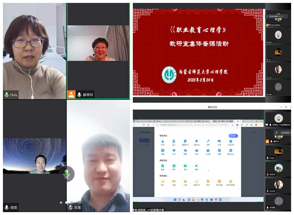 为适应新冠肺炎防控形势下的线上教学,yl7703永利集团各公共课教研室分别于2月22日与2月24日组织开展了《中学教育心理学》《职业教育心理学》线上集体备课活动,本学期授课教师均在线参加。