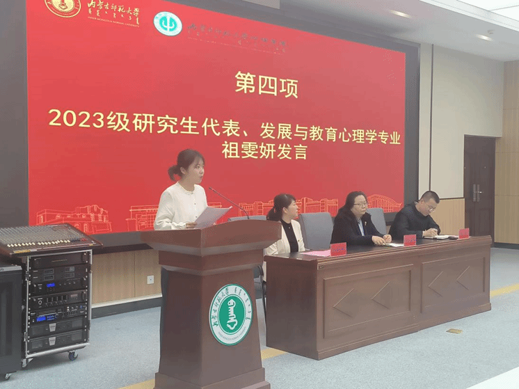 2023级发展与教育学专业研究生祖雯妍作为在校学生代表发言。她结合自身经验,从课程学习、科研入门、社团生活和时间管理等方面,为学弟学妹们提供了实用而中肯的建议。