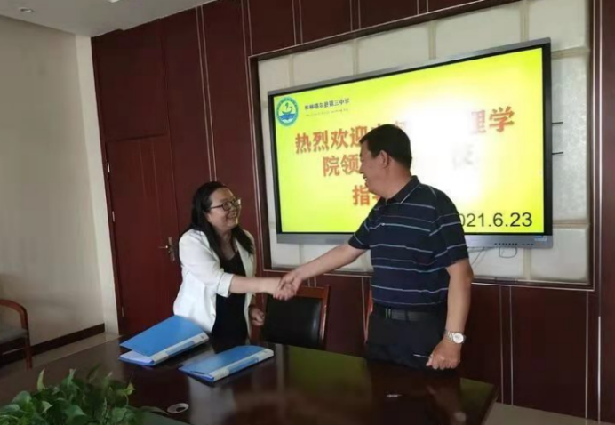 为深入贯彻国家教育方针政策,依托心理学学科专业优势,精准扶智,同时实现师范生高质量教育实践,全面推进学院与地方教育实践基地深度合作,6月23日,yl7703永利集团院长乌云特娜、副书记兼副院长张晓阳和心理学系主任杨晓峰一行三人,赴呼和浩特市和林格尔县第一中学、第二中学和第三中学,走访实践基地,签订教育实践基地共建协议,并与基地校领导老师、实习学生进行座谈研讨。和林县三所学校的校长、副校长、教导处主任、实习指导教师等分别参加仪式。